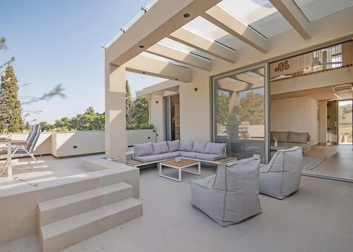 Aqualand se află la 10 minute cu mașina, în timp ce la Biserica Sfântul Spiridon din Corfu se poate ajunge în aproape 10 minute cu mașina. Printre reperele educaționale din apropiere se numără Universitatea Ionio, care se află la 4.2 km de la această vilă.